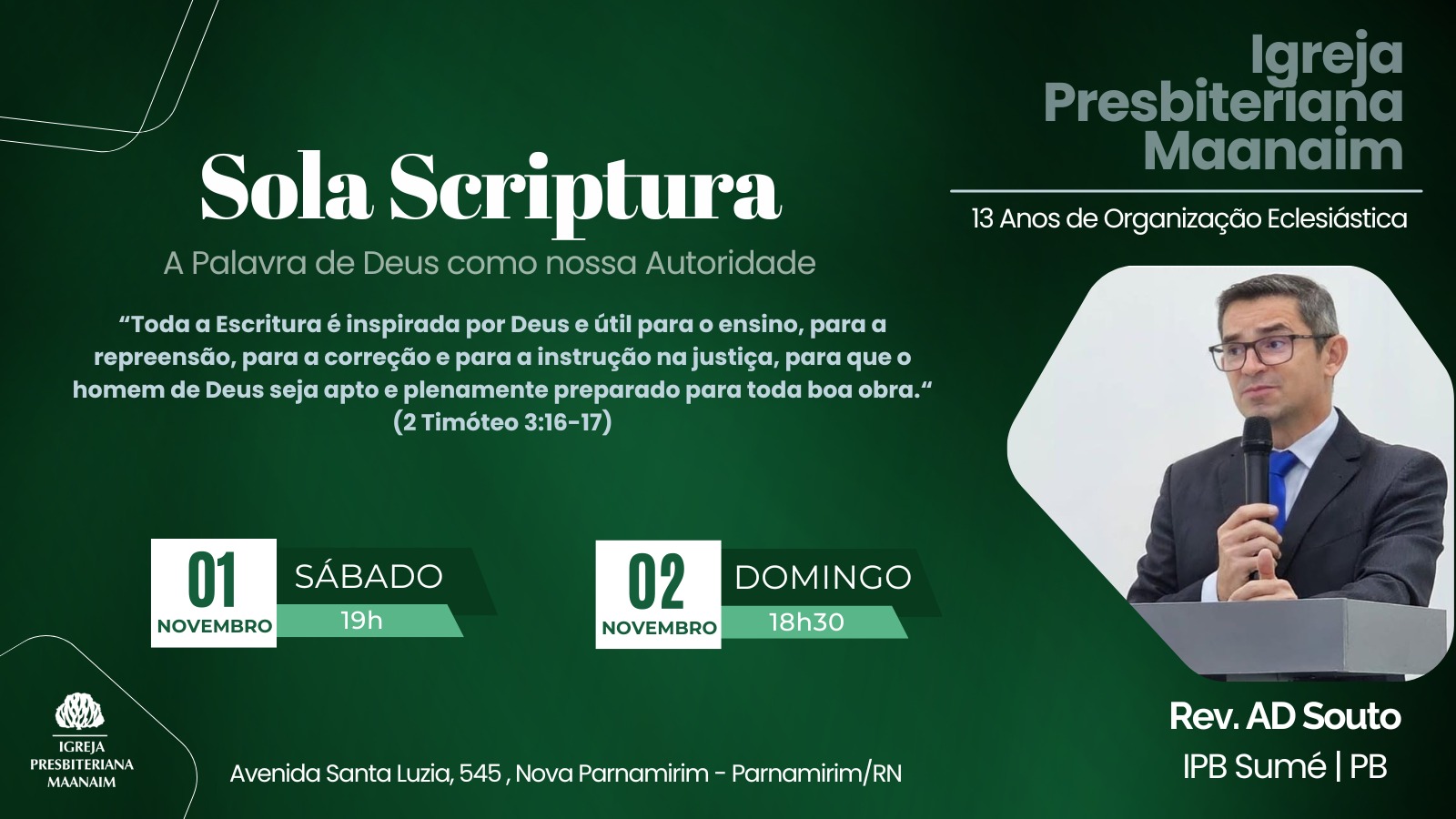 Para nós, assim como para a Igreja Reformada histórica, a Bíblia é a única regra de fé e de prática dada por Deus para a igreja, sendo assim, ela é a fonte primária e última para dirimir, guiar e encerrar discussões sobre a teologia, liturgia e prática da fé cristã.