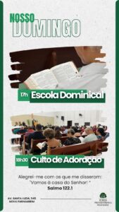 Na sequência, as 18h30, teremos o Culto de Adoração ao Senhor!